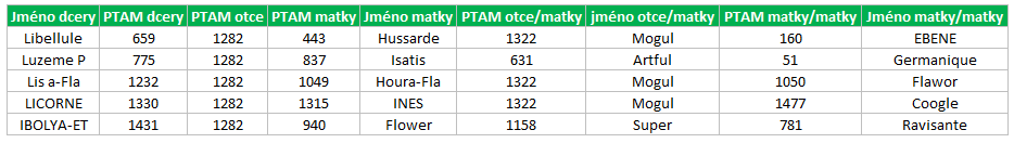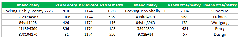 Nicméně i pozice matek matek -babiček plemenic je velmi důležitá, jak je zřejmé v tabulce dcer býka Gelizat.